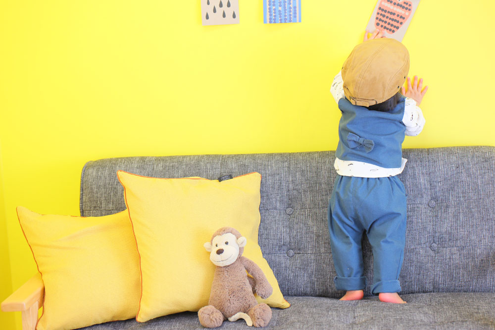 おもちゃで遊びながら楽しそうにモデルさん