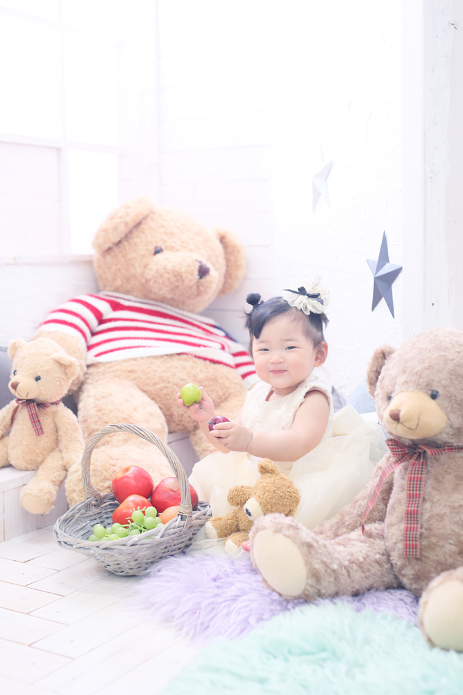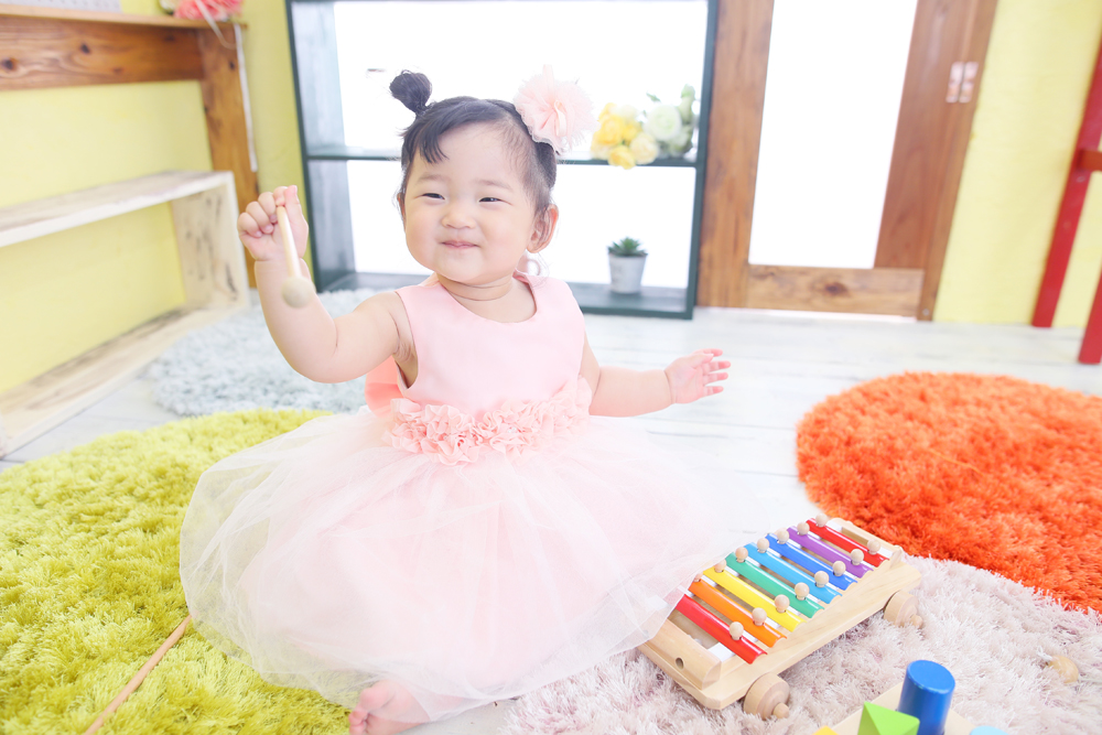 本日最初のご紹介は1歳誕生記念でお越しの女の子です🌸 お持込みとお店のお衣装での撮影でした!