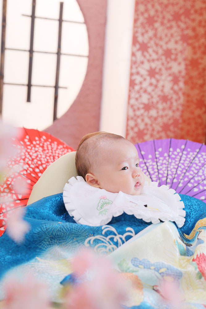 着物撮影の時はパパさんママさんの声をきいて とってもかわいい笑顔をみせてくれました! 途中少し休憩をはさんだ後のうつ伏せもしっかり きまりましたね!がんばってくれてありがとう☺