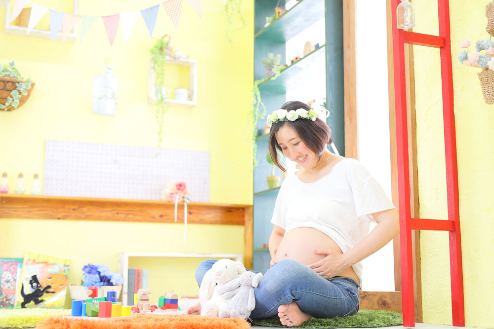 元気いっぱいなゆまちゃんを見つめるママさん^^ いつもはお腹にチューしてくれるというゆまちゃん☆ 今日は恥ずかしかったのかチューすると走っていました!