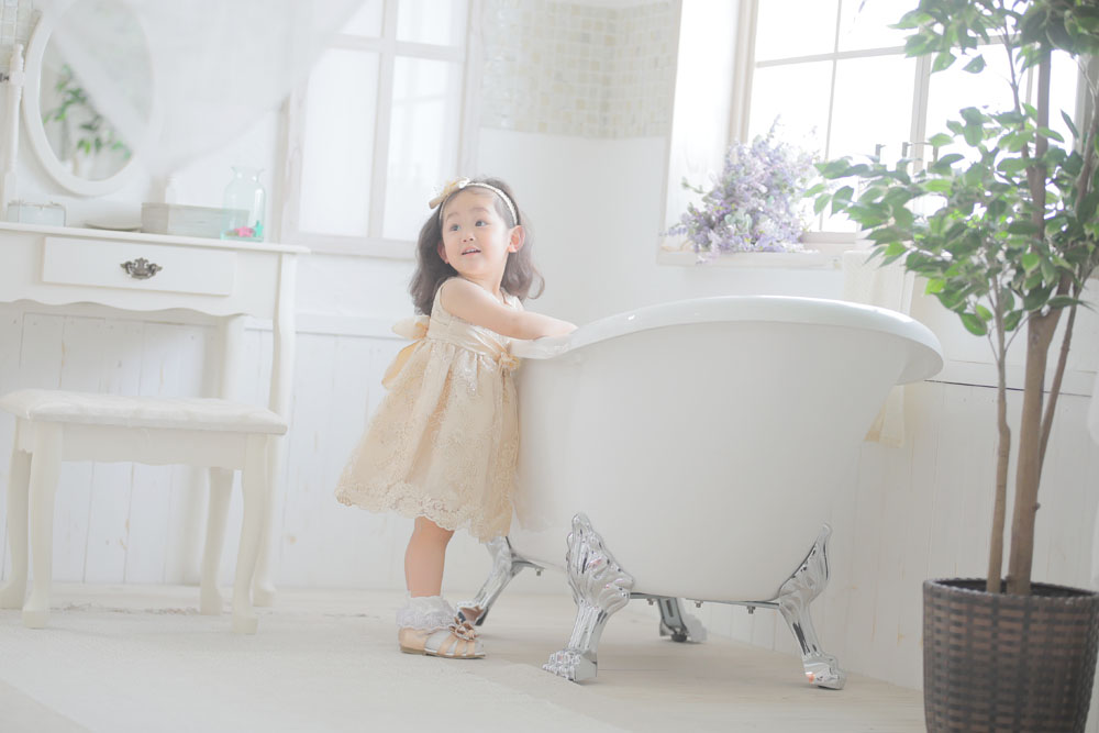 続いてのご紹介は3歳七五三の女の子です☆ お持ち込みのドレスとお店の衣装での撮影でした!