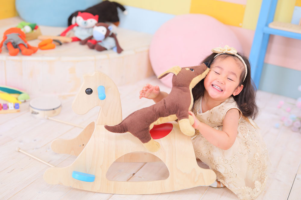ぬいぐるみが好きな女の子でお店にある子たちとも たくさん遊んでくれました^^ 撮影中に離したくなくて抱っこしている姿が とっても可愛かったです🌸
