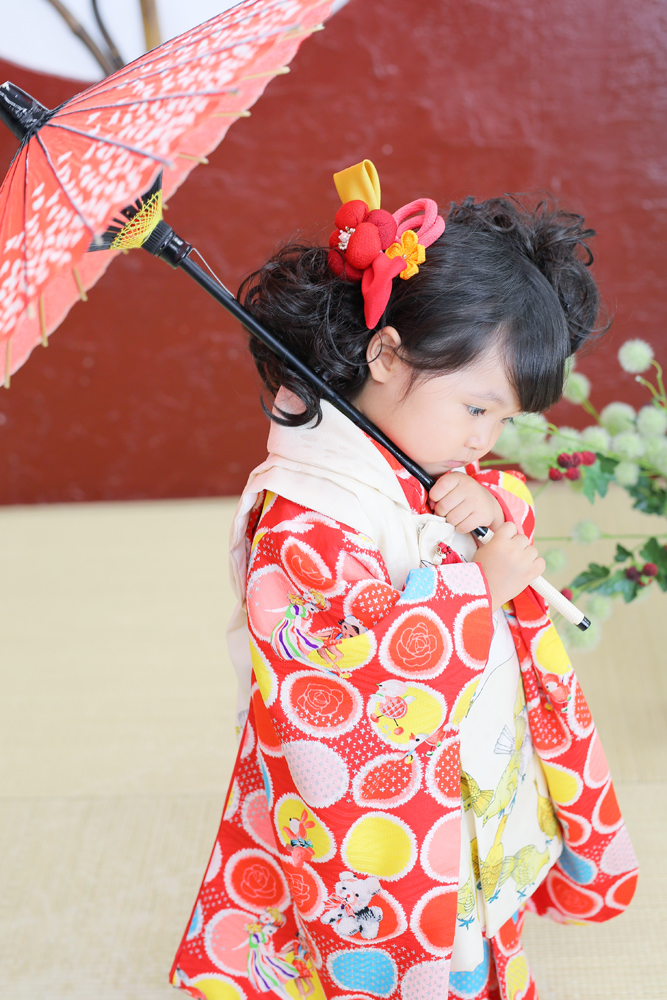 本日最初のご紹介は3歳七五三記念でお越しのりなちゃんです🌸 お持込みとお店のお衣装での撮影でした!
