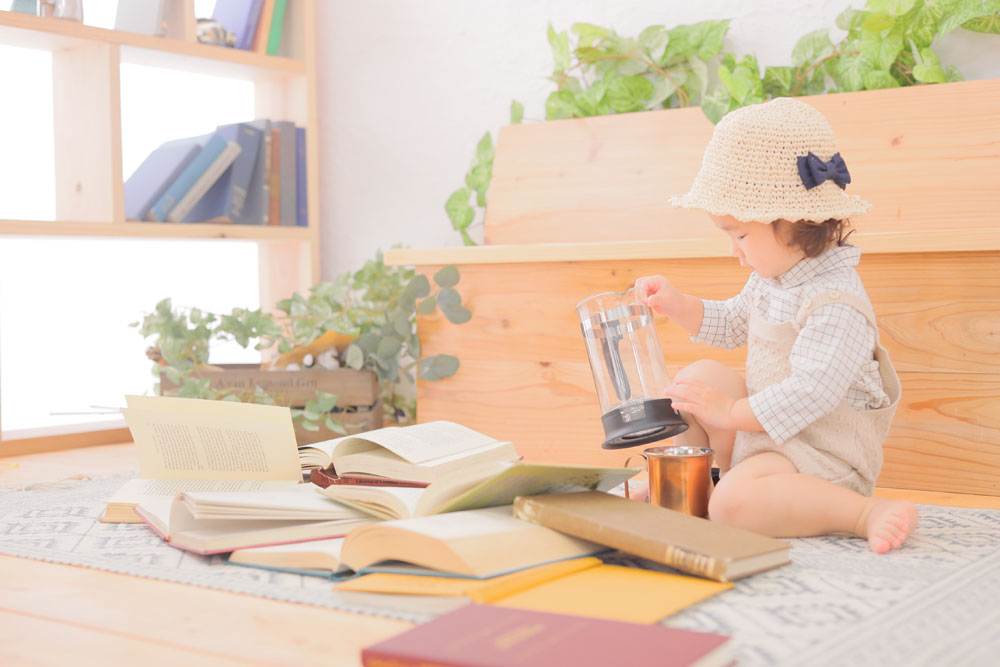 スタジオのおもちゃに興味津々の様子でした^^