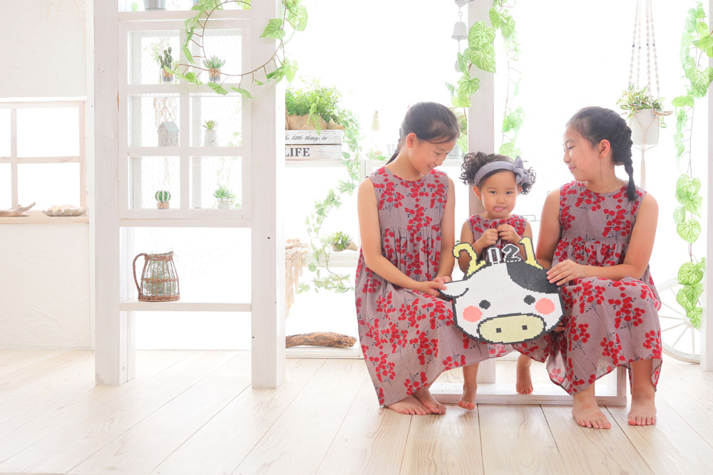 お持ち込みの姉妹でお揃いのお洋服とお着物とでの撮影でした^^