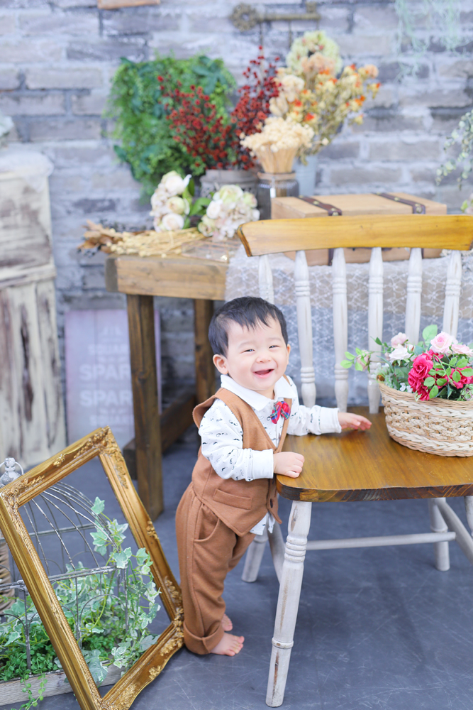 本日最初のご紹介は1歳バースデー記念でお越しのりんたろうくんです🌟 お持ち込みいただいたお衣装とお店のお衣装での撮影でした!