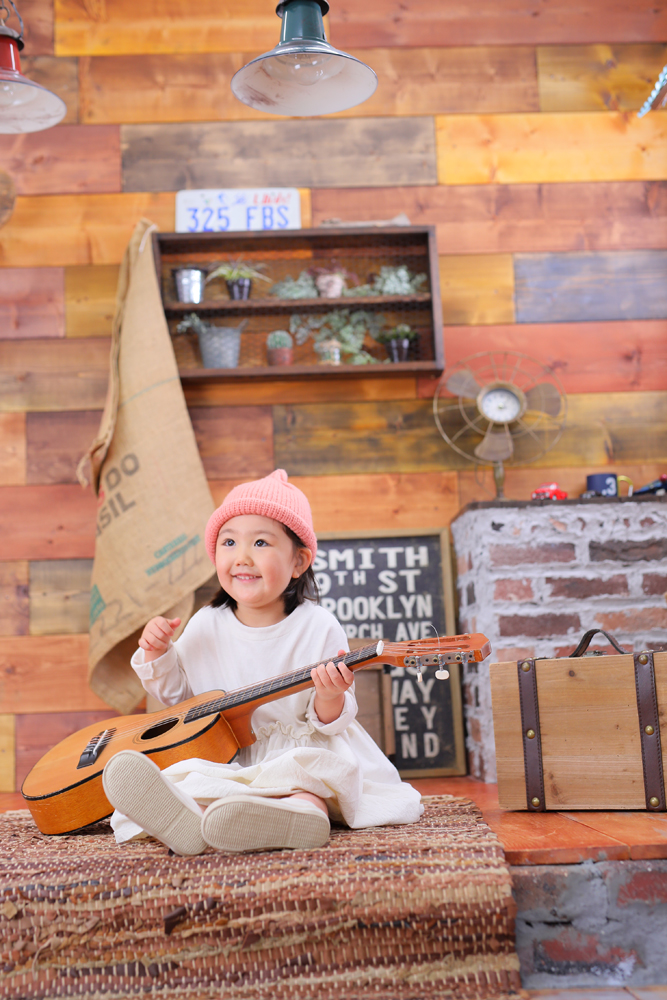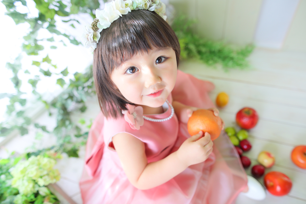 来店時まで寝ていた様子で、少し眠そうにしていたあおいちゃん^^ かわいいドレスを着ると元気が戻り 撮影中はかわいいニコニコな笑顔を見せてくれました! お持ち込みいただいた白いワンピースもとっても似合っていました☆☆