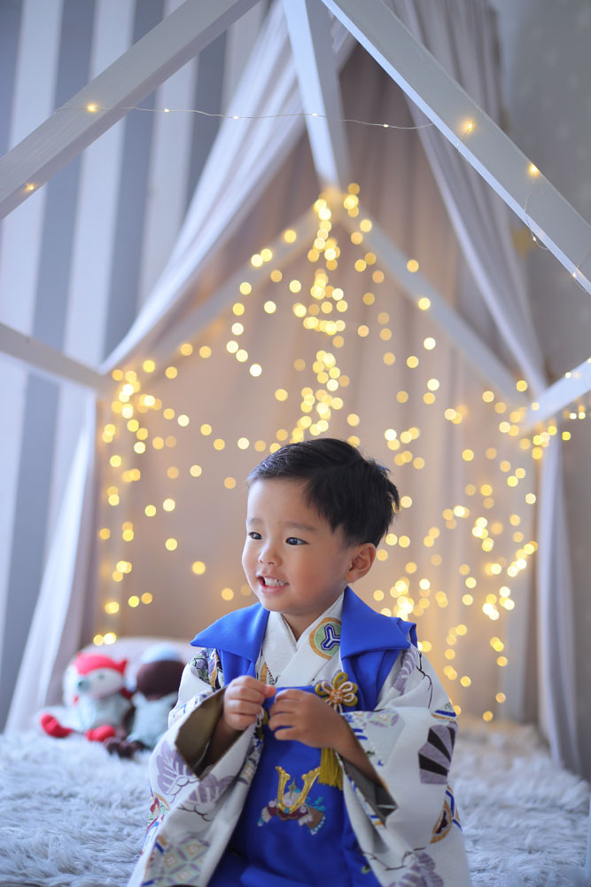 続いてのご紹介は3歳七五三記念のあおいくんです☆ お店の着物とお持ち込みの洋服での撮影でした!