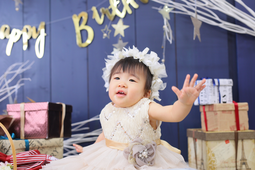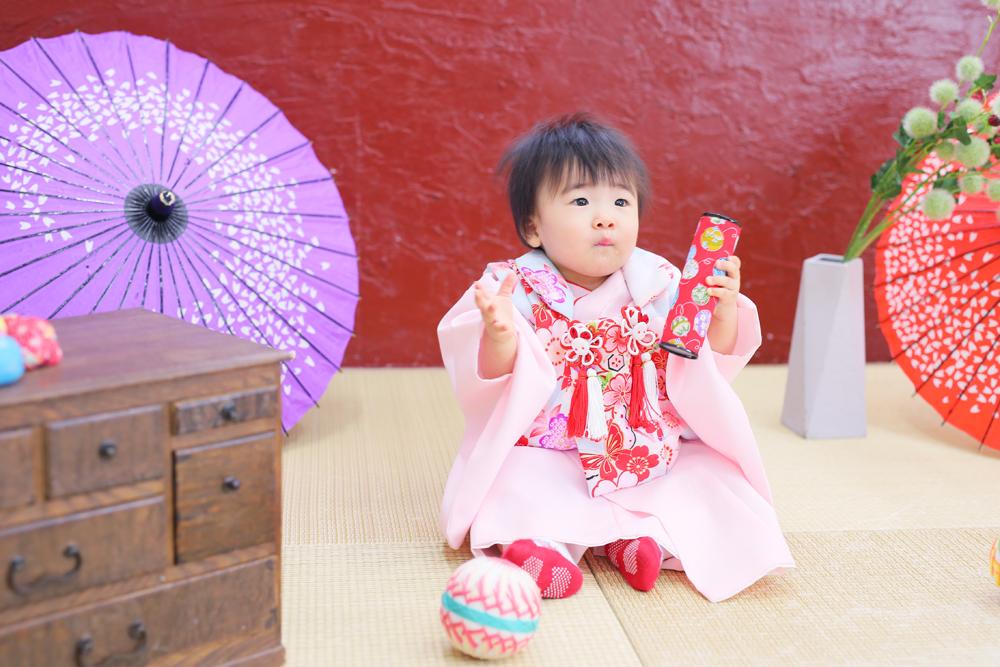 本日最初のご紹介は1歳の誕生記念でお越しの女の子です♪ お持ち込みとお店のお衣装での撮影でした!