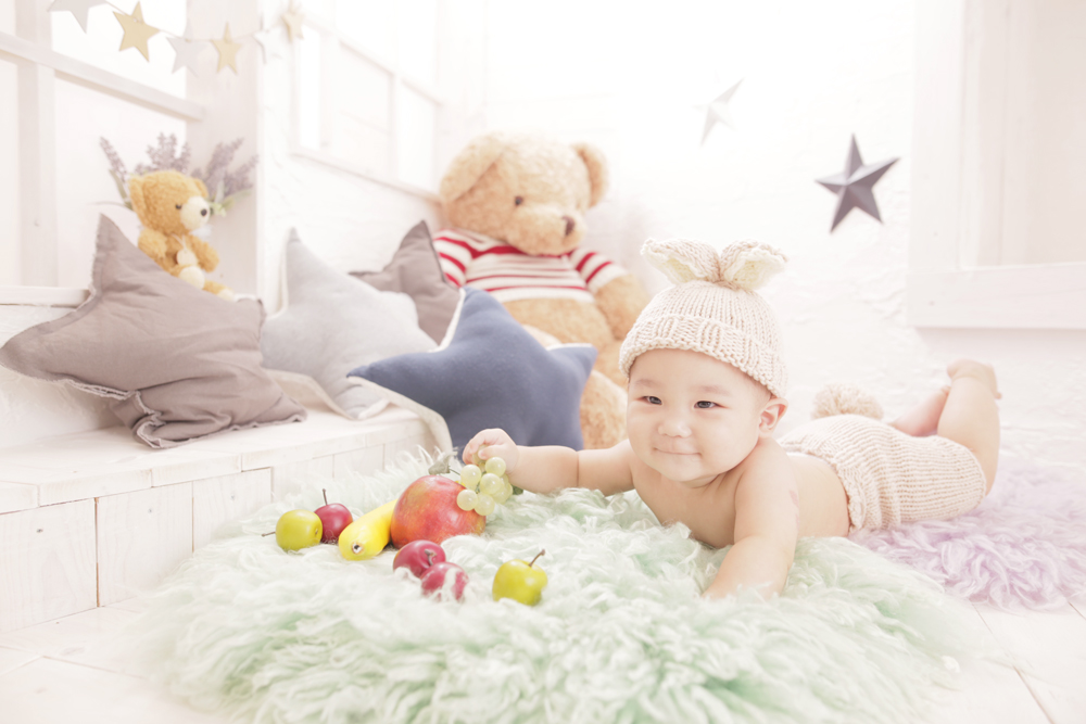 パパさんを見た後にニコッとしてこてんとうつむいてしまう しぐさがとても可愛かったです^^ 少し眠たそうでしたが最後までモデルさんばっちりでした!!