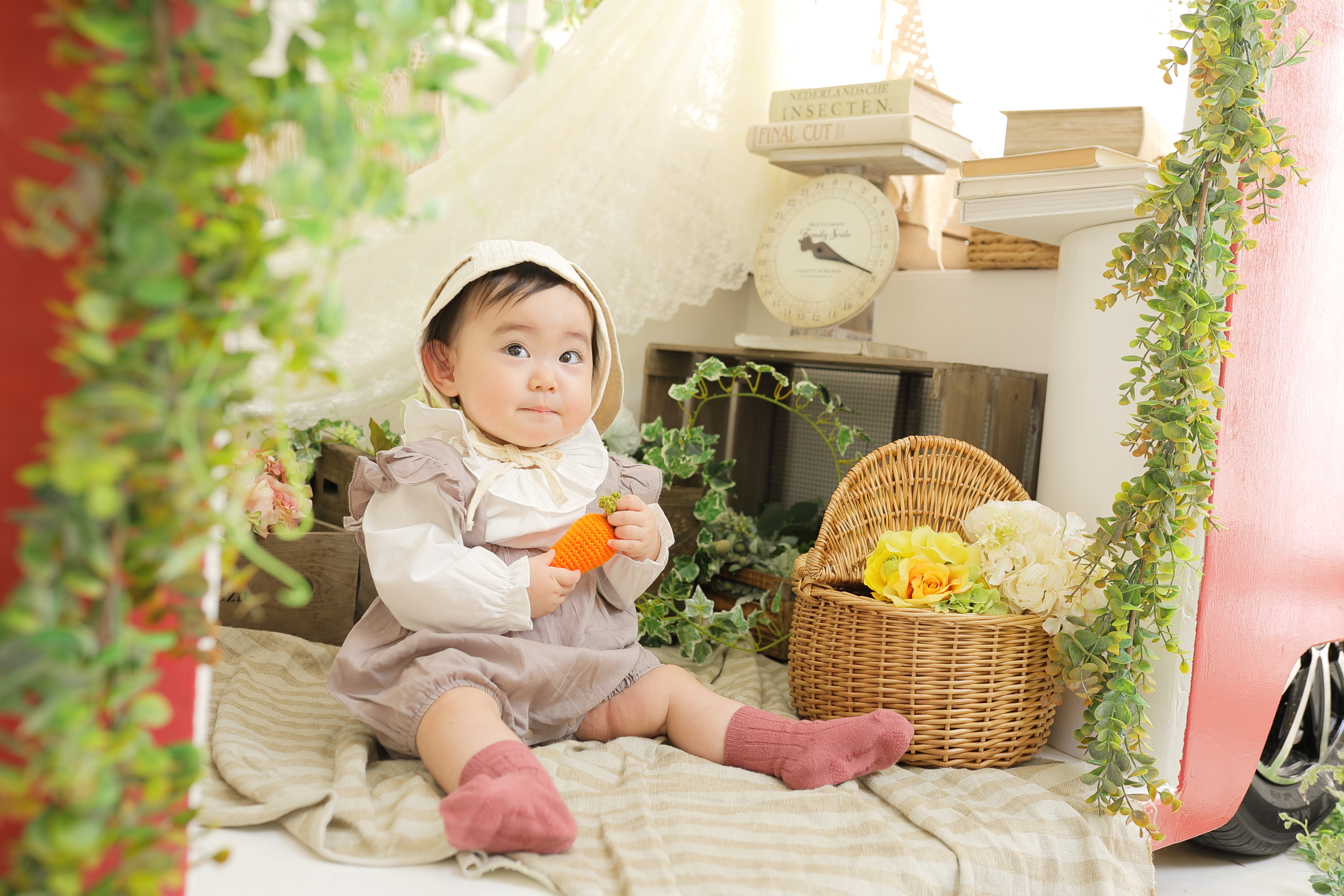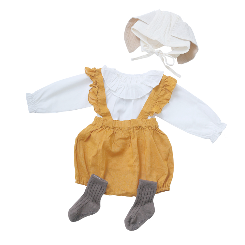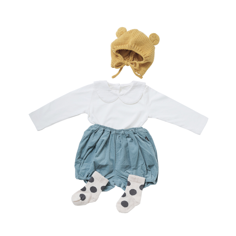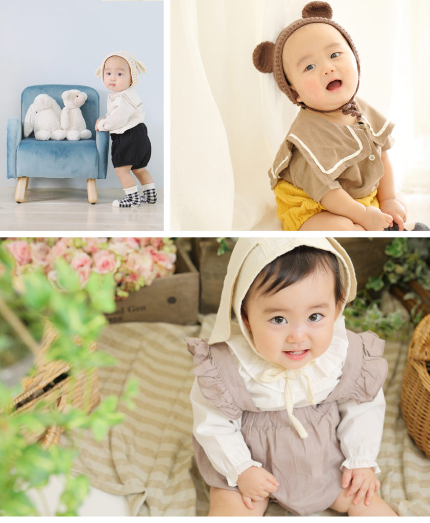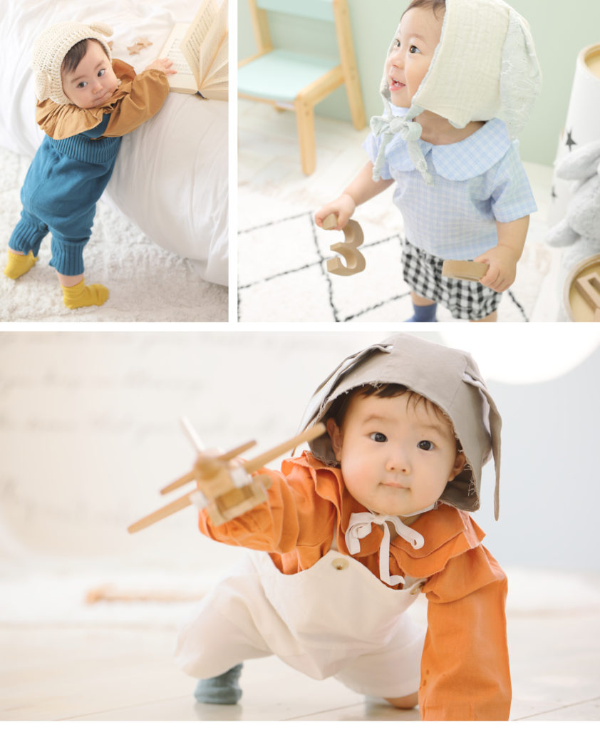赤ちゃんらしいシルエットが引き立つ組み合わせとなっており、お座り・つかまり立ちなどのポーズがより可愛らしく♡