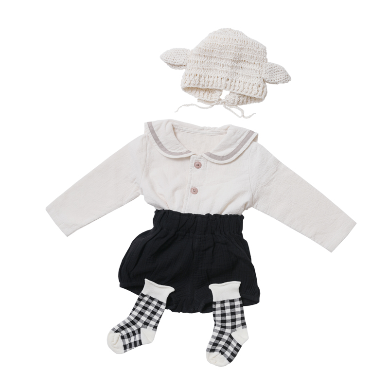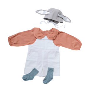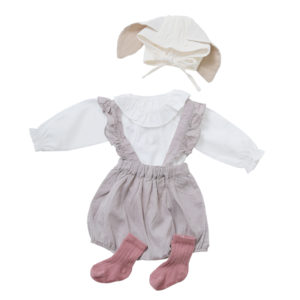今回の新作はひつじやうさぎなどのどうぶつモチーフのボンネットに、かぼちゃパンツ・サロペットを合わせたコーディネート!