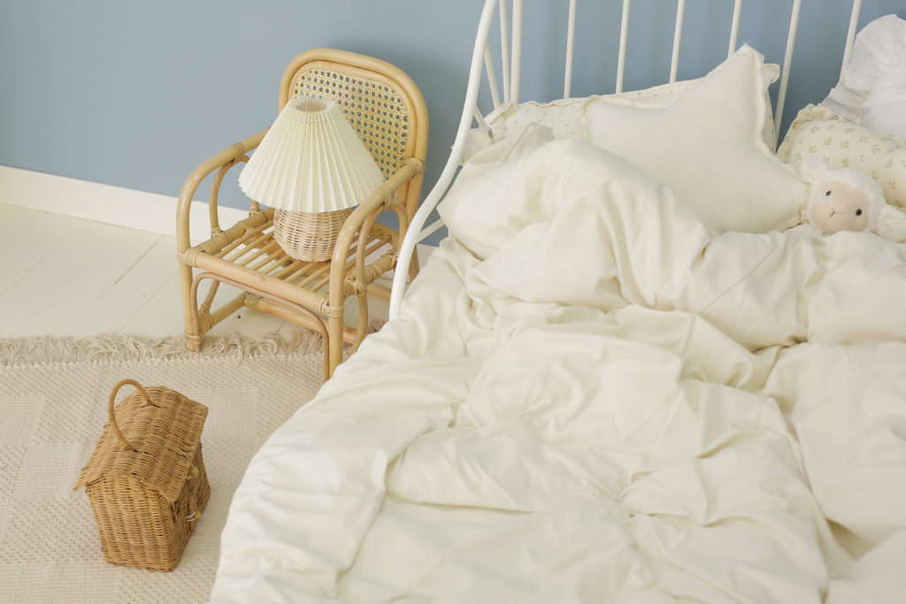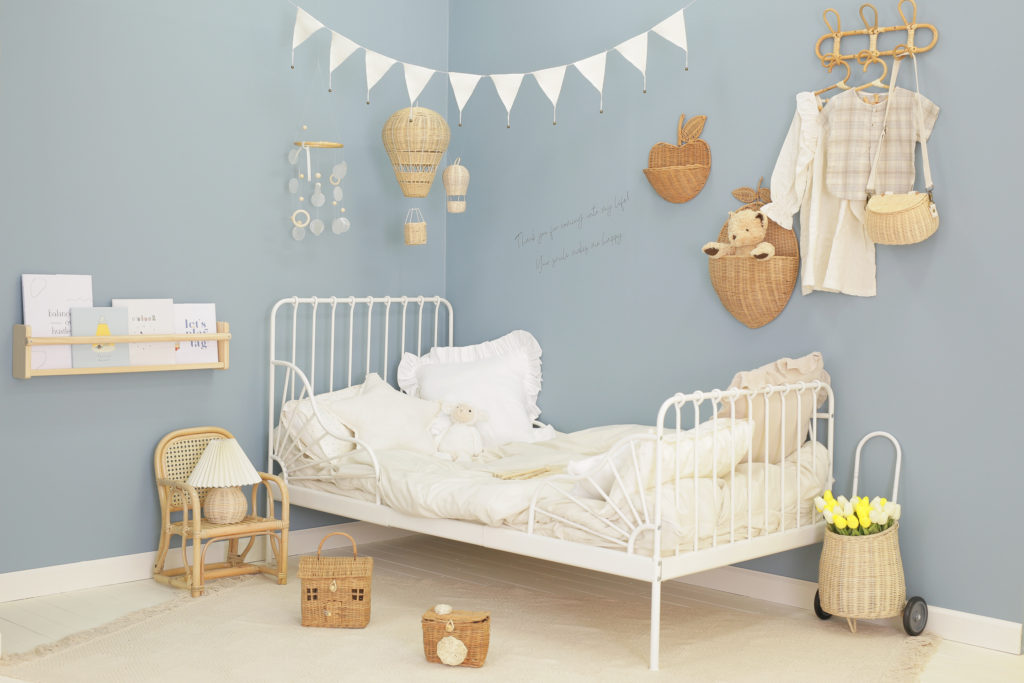 小物はラタンで統一して優しげで