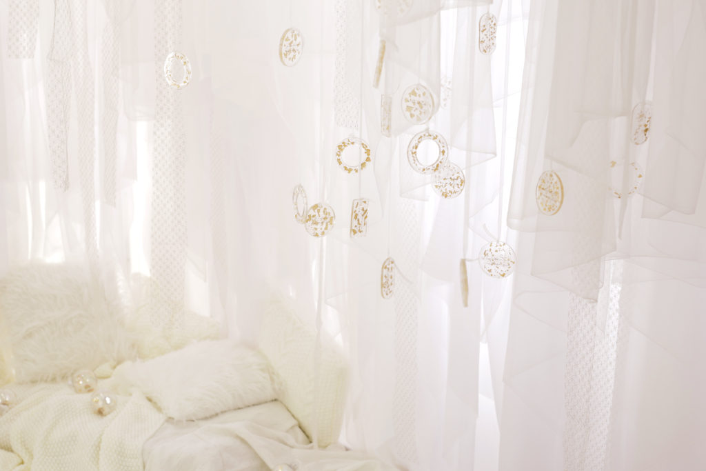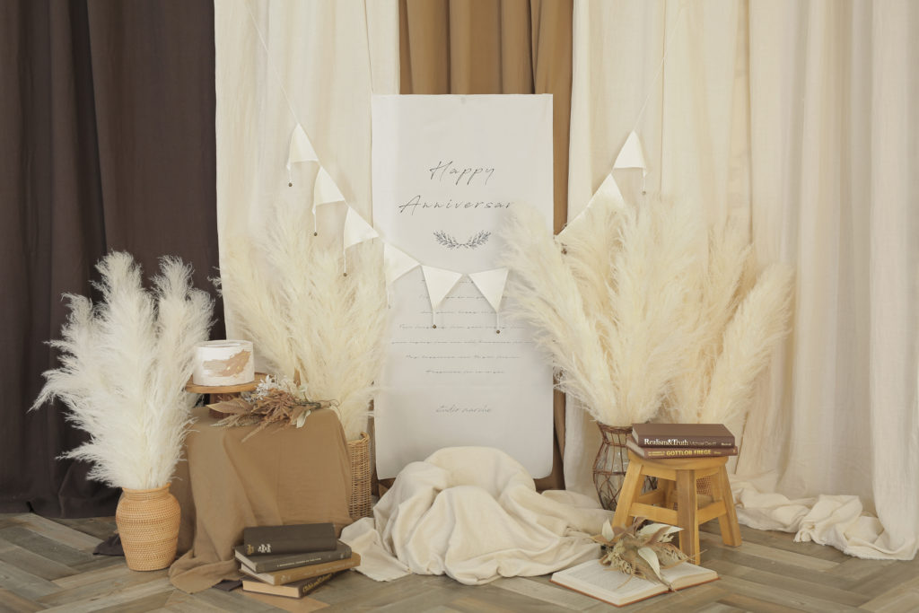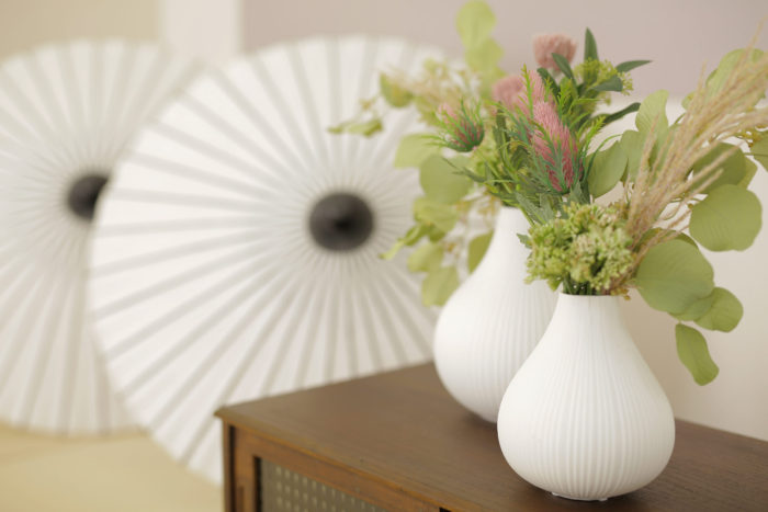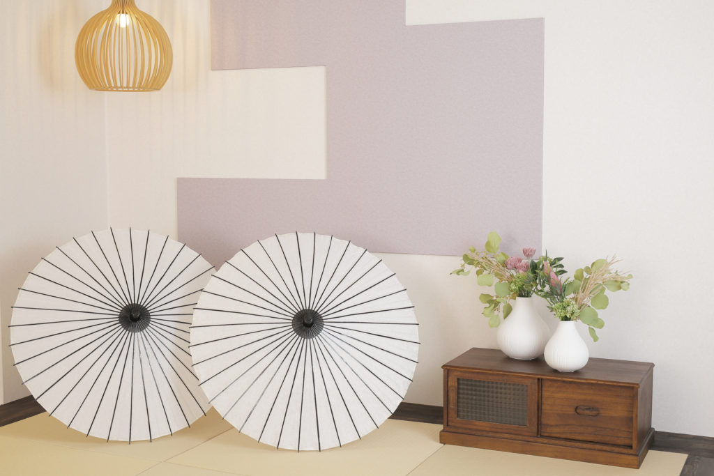 白い傘や和を意識した装飾品は