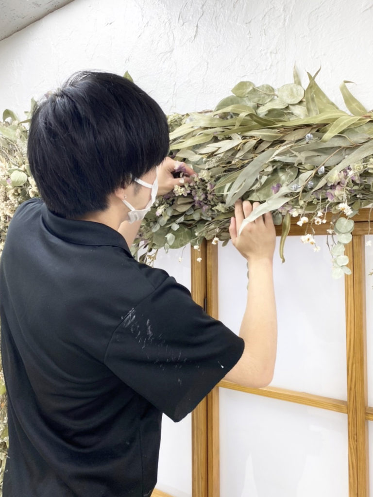 一つ一つ丁寧にドライフラワーを装飾し