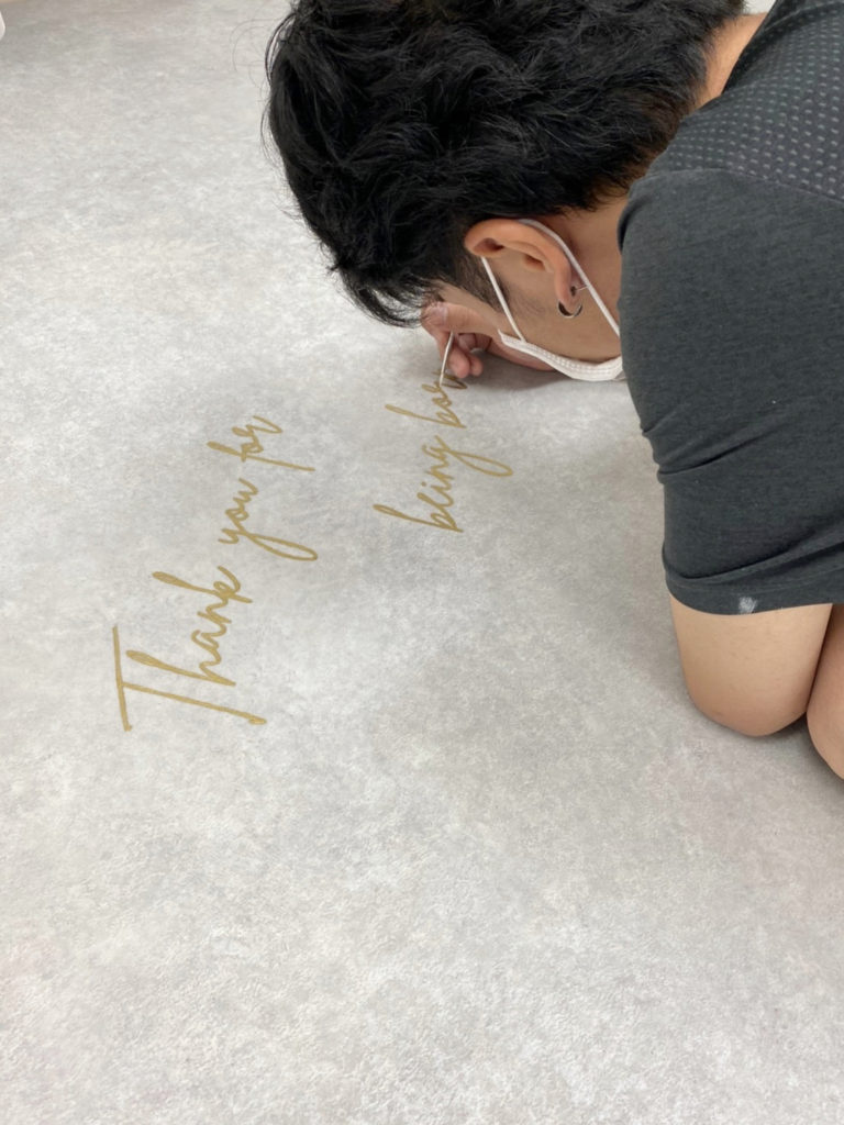 床の文字もスタッフの手書き!