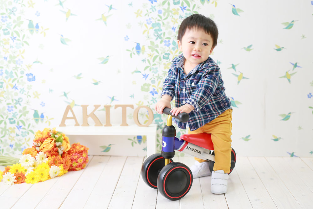 歩くのが大好きなあきとくん^^ スタジオ内をお散歩しながら いろんなおもちゃを見つけてくれました! お家からかっこいいバイクも持って来てくれて モデルさん上手にしてくれました! ママさん、パパさんご協力ありがとうございました!