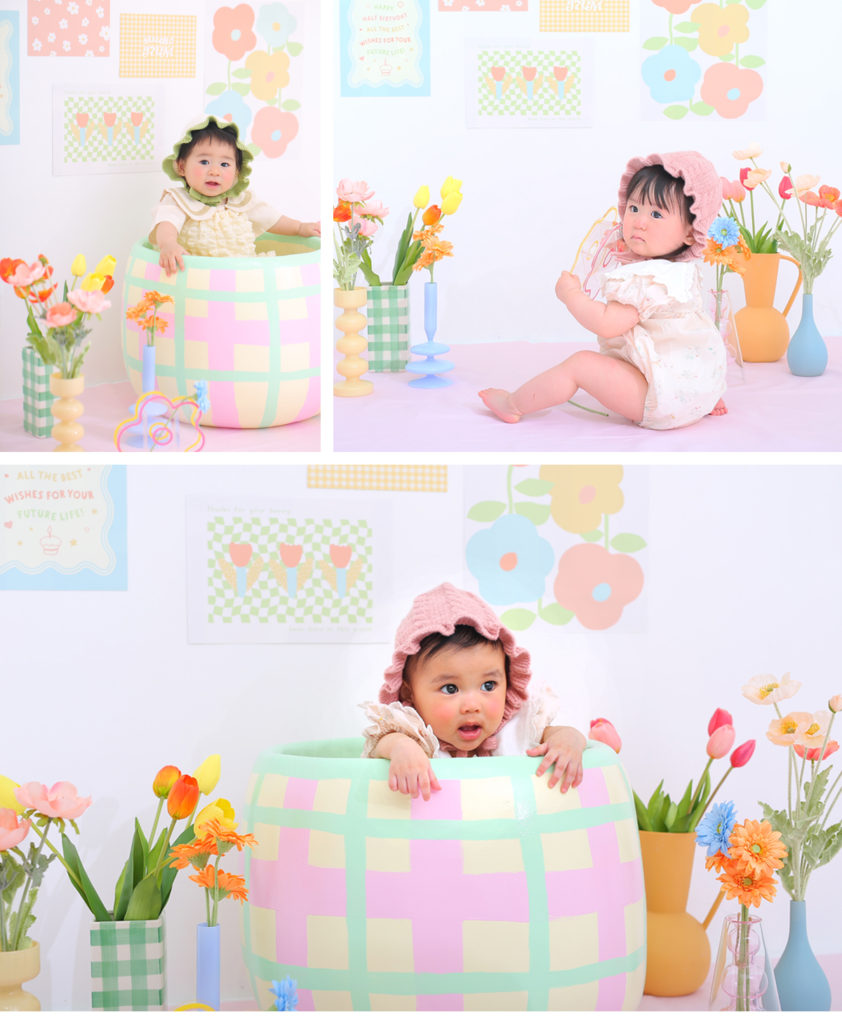 | ・ハーフBD~1歳BD (6ヶ月~1歳のお子様) 限定の撮影スタイルになります。 |