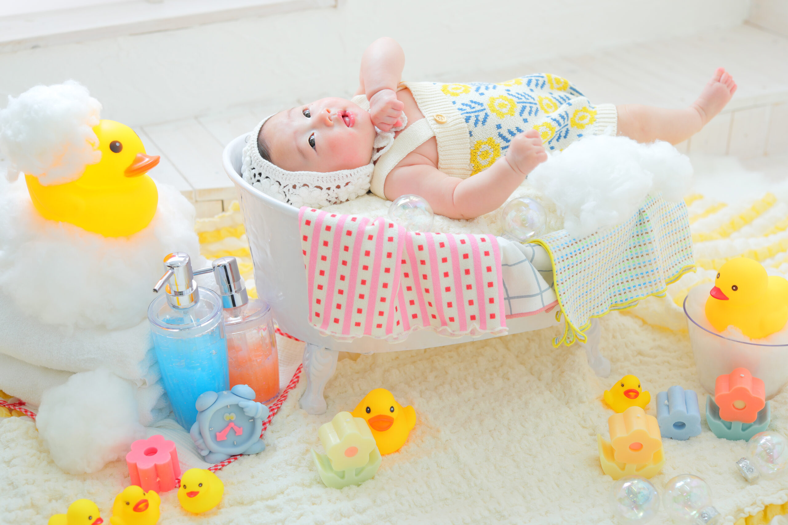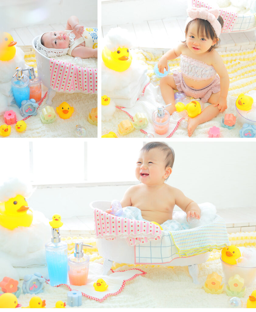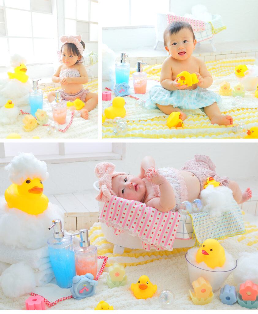アヒルちゃんに囲まれ楽しいバスタイムに🐤