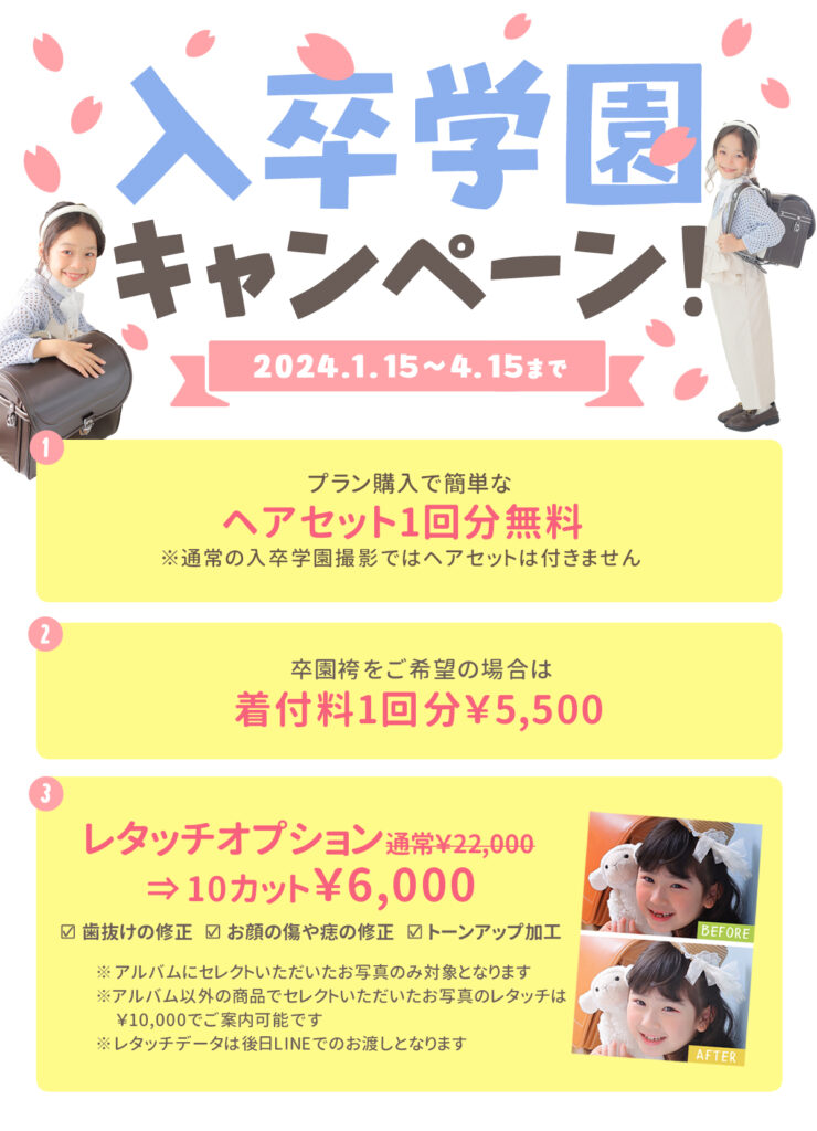 ※通常の入卒学園撮影では
