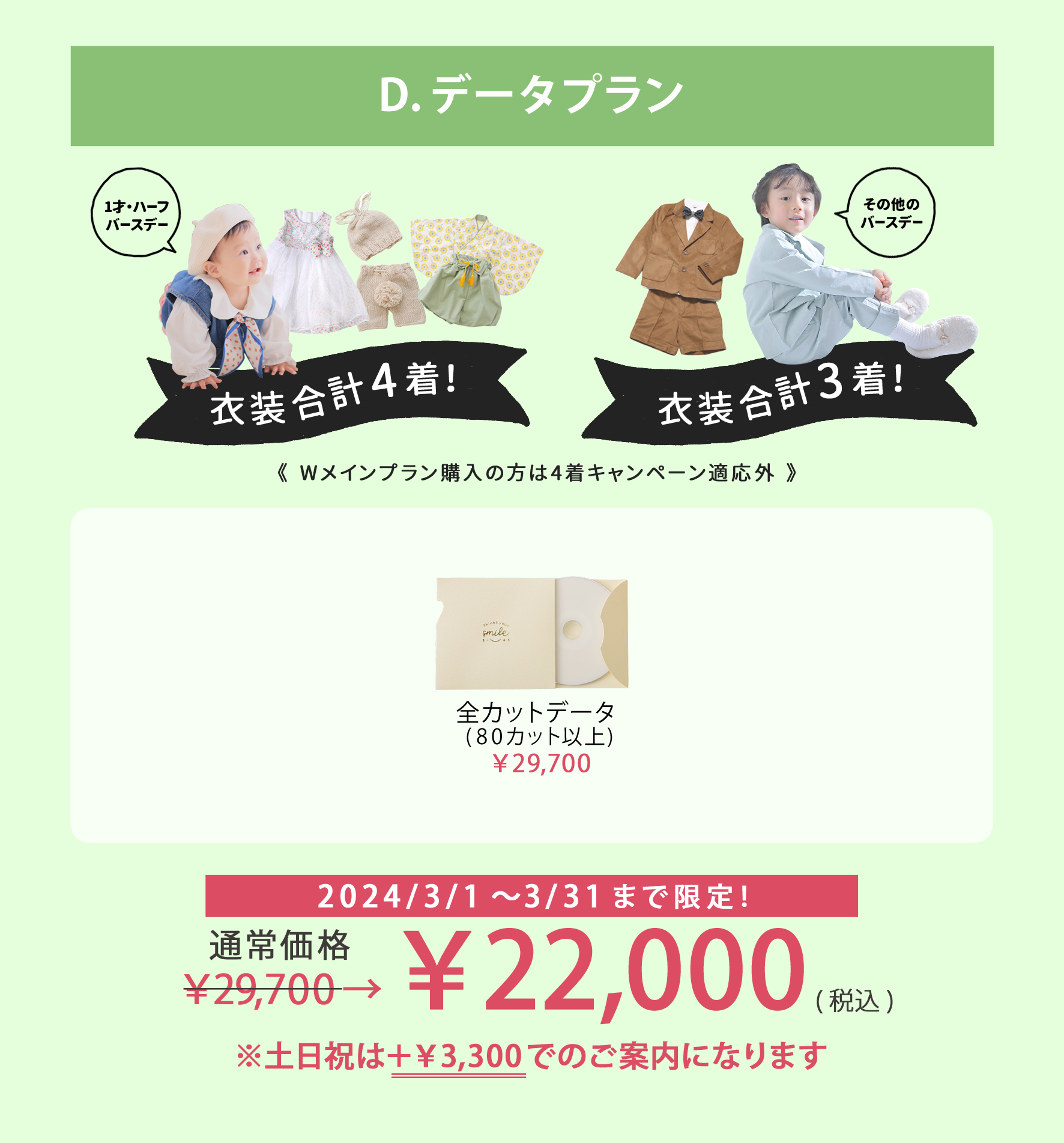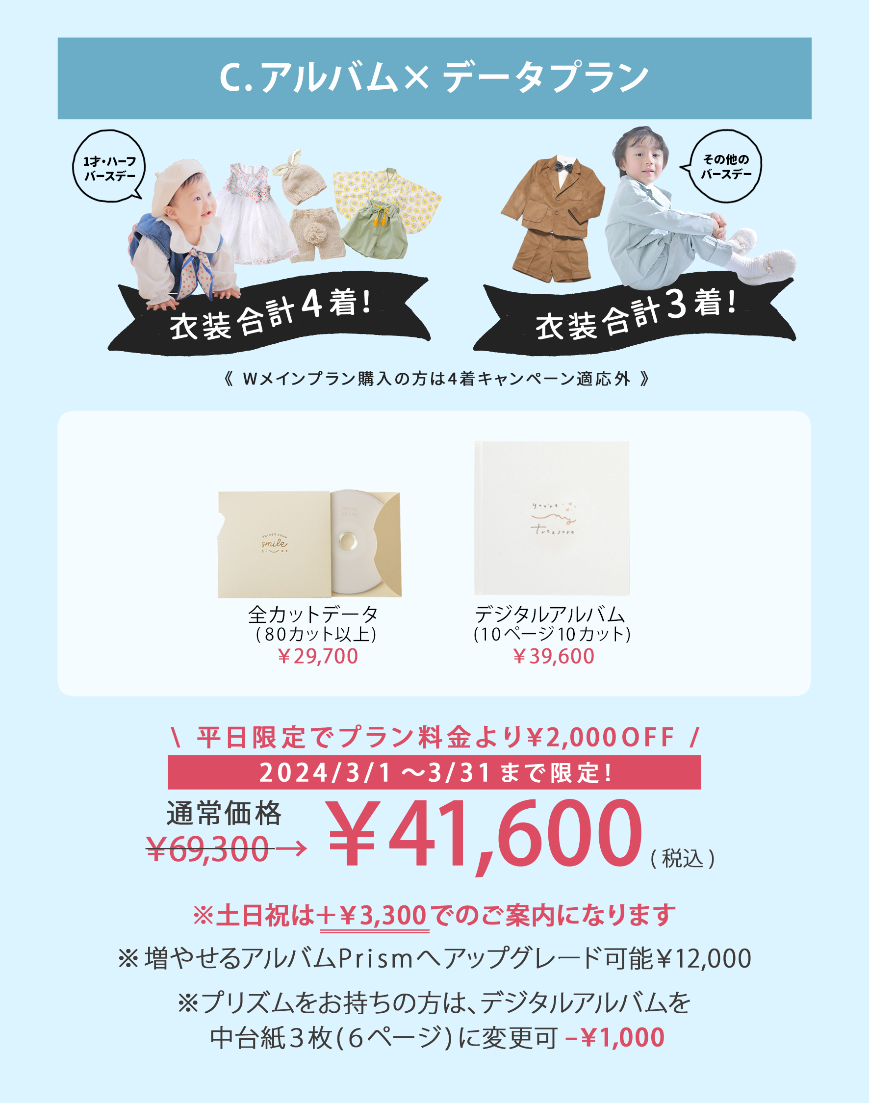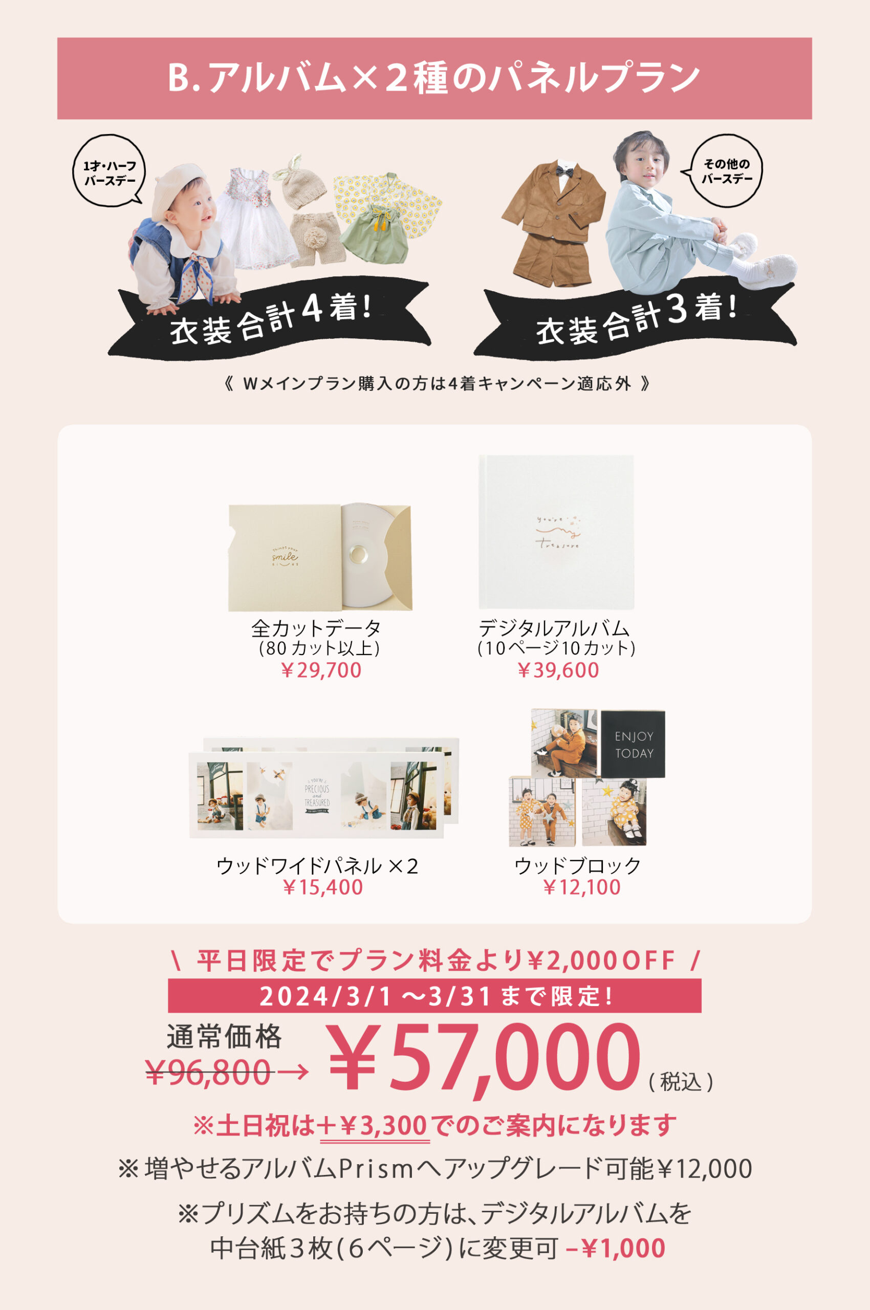メインの『お子様が2名・2枠撮影』を