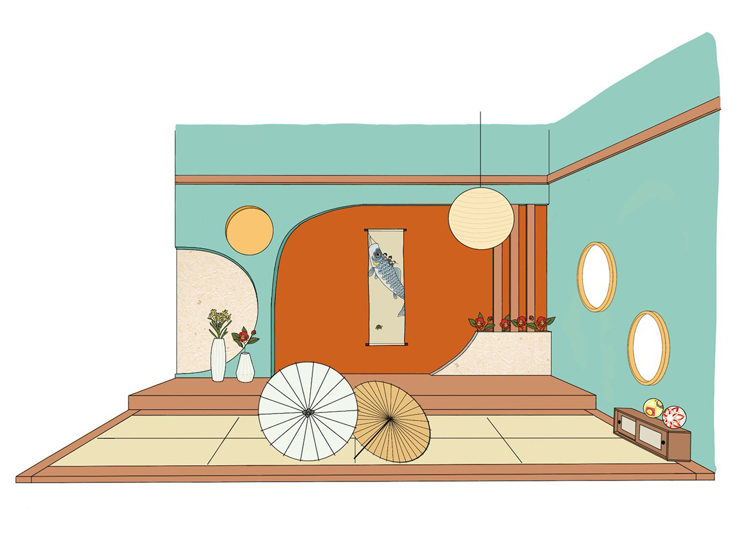 配色にこだわったレトロポップな和室