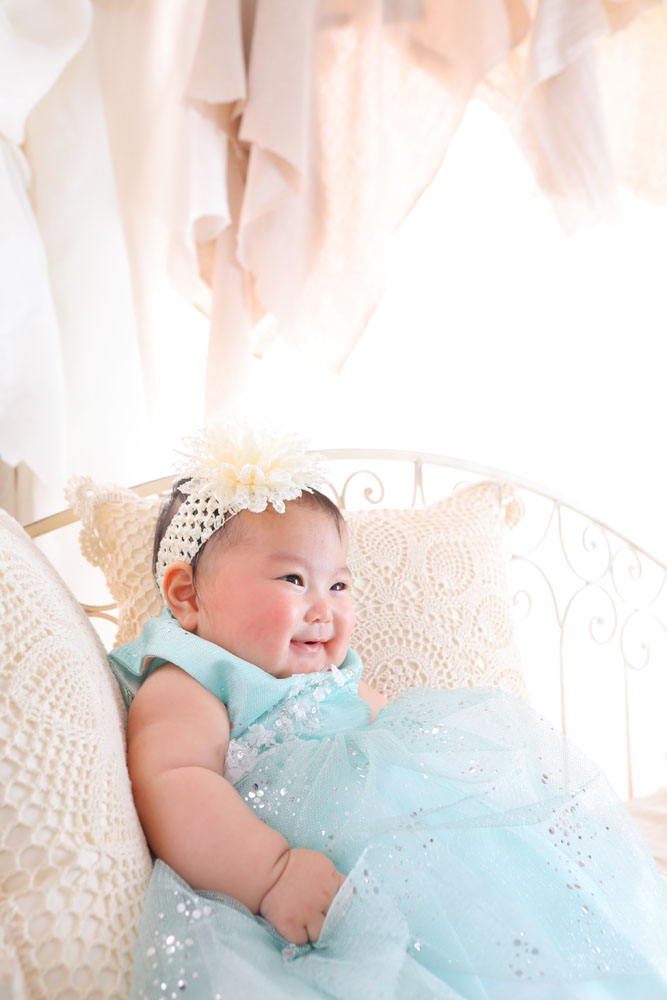 お店に着くまでお昼寝していたみたいで 最初はカメラをじーっと見て真剣なお顔でした^^ 慣れてくると笑顔バッチリ☆ モデルさん上手でした!!