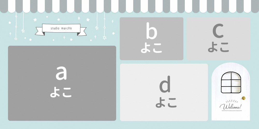 ※テンプレート配置図のお写真の縦横、重なりの順序、配置は固定です。