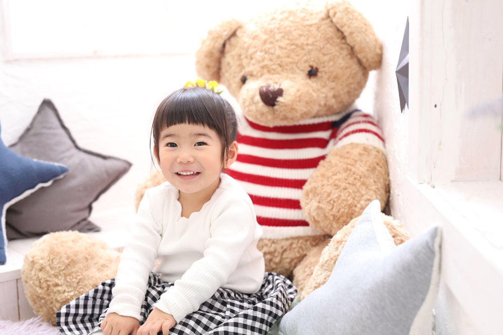 とっても元気いっぱいな2人^^ 最初は少し緊張した表情でしたがスタジオにいるクマさんを 気に入ってくれて楽しい撮影になりました☆☆