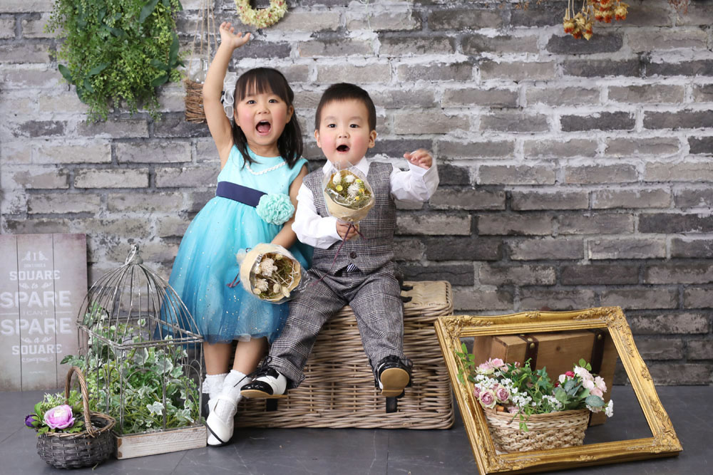 恥ずかしがり屋のけいたくん^^ スタジオにいるクマさんにビックリしたり お姉ちゃんとの兄弟撮影では場所を取り合ったりしながらも 最後まで頑張ってくれました!!