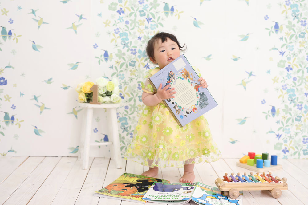 本日最初のご紹介は1歳誕生記念でお越しの女の子です✿ 1着お持ち込みのお衣装で撮影でした!