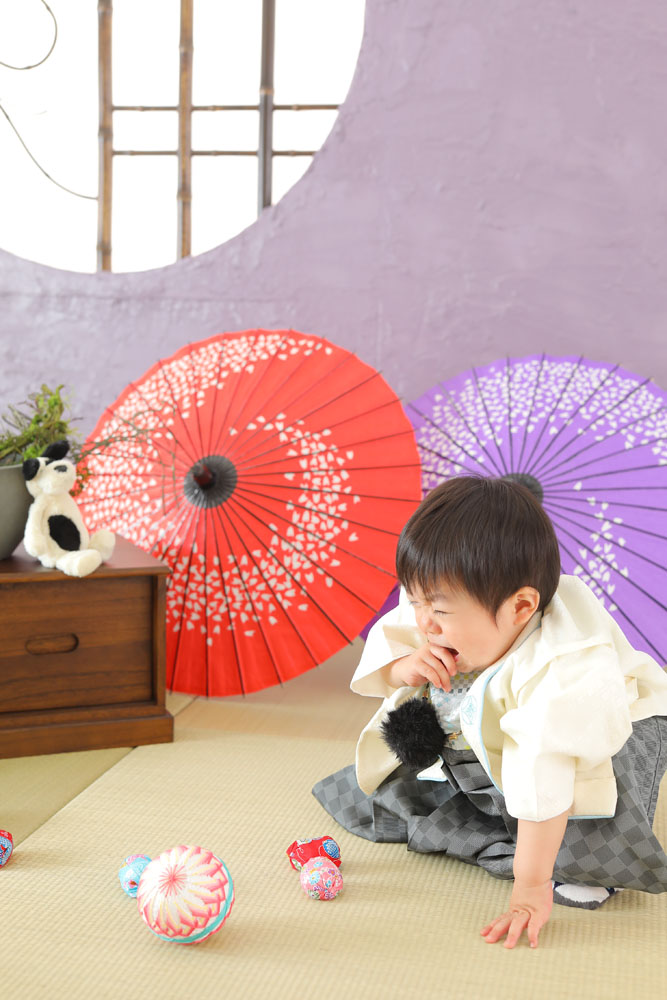 本日のご紹介は1歳誕生記念のいつきくんです☆ お持ち込みのシャツとお店の着物での撮影でした!