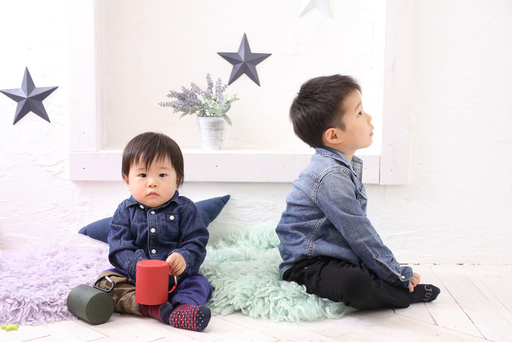 本日最初のご紹介は1歳誕生記念でお越しの男の子です☆ お持ち込みのお衣装での兄弟撮影でした✿