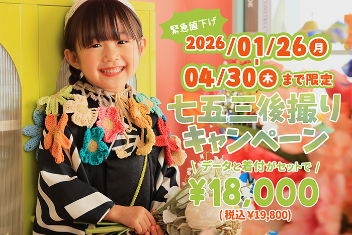 【福岡店限定】 ❁七五三後撮りキャンペーン❁ お着物当日レンタル対象プラン シーズン後も七五三撮影を ”お得に”撮影したい方にオスス…