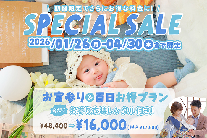 【福岡地域限定】 SPECIAL SALE 開催! お宮・百日限定お得プラン 生まれて初めての大切な記念。 多くの皆様に当店…