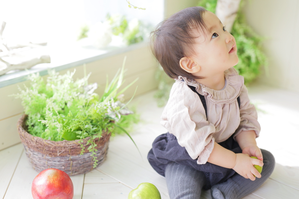 こんにちは!スタジオマルシェのけいです♪ 1歳誕生日記念でご来店の女の子のご紹介です☆☆ ママさんから離れると泣いちゃったりもしましたが いろんな…