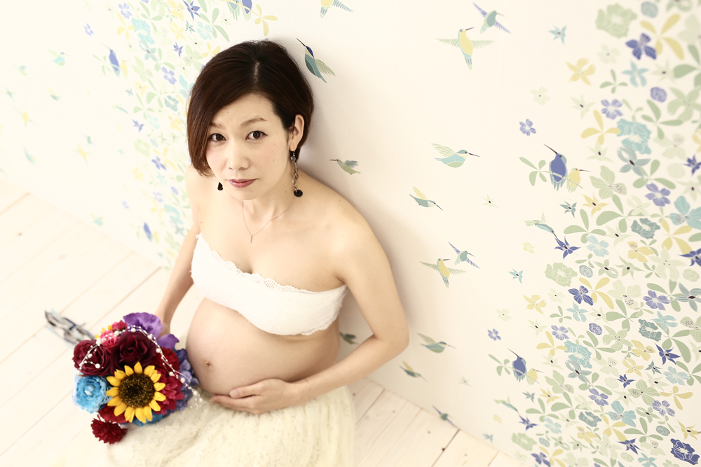 こんにちは!スタジオマルシェのひらです♪ 本日最後のご紹介は マタニティイベントご参加の古村さまです☆ 緊張気味のママさんと少し照れ気味のパパさん…