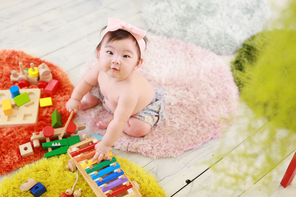 こんにちは!スタジオマルシェのひらです♪ 本日最後のご紹介は ハーフバースディ記念でお越しの女の子です^^ 来た時からご機嫌さんで最後までニコニコ…