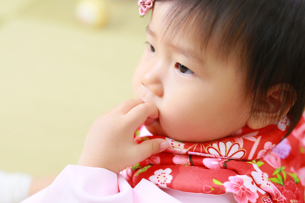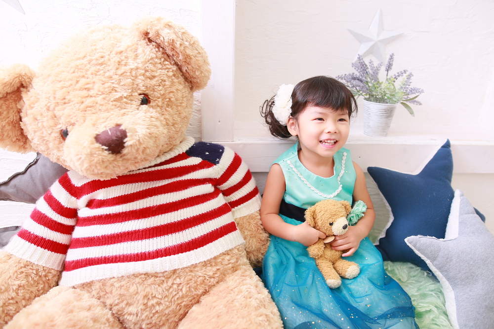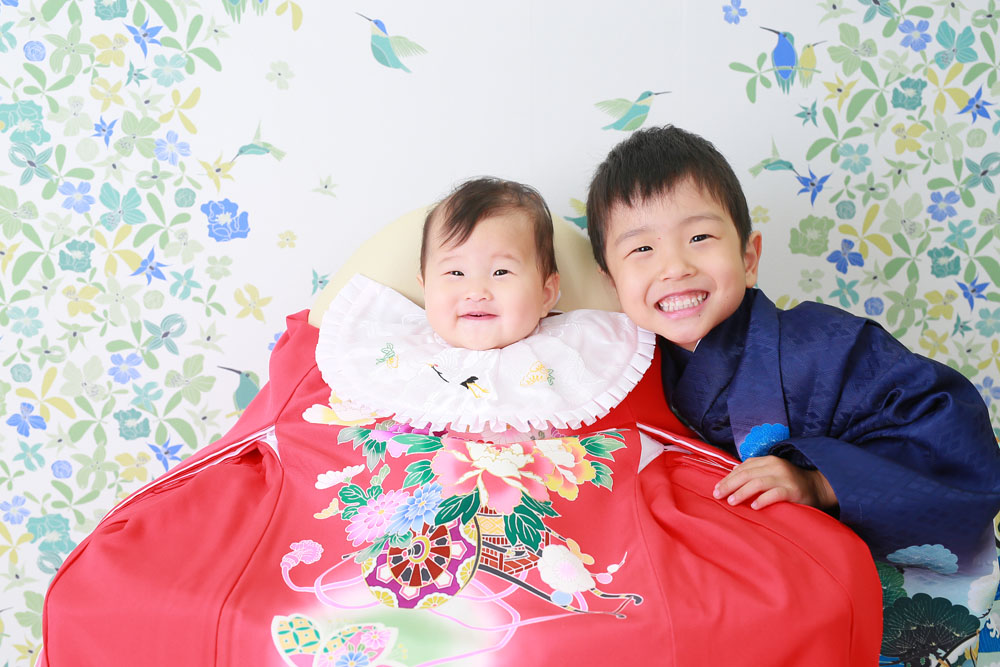 こんにちは!スタジオマルシェのけいです♪ 本日、最後のご紹介は 5歳七五三記念のとうまくんとお宮参り記念のいとはちゃんです☆ お店にあるものに興味…