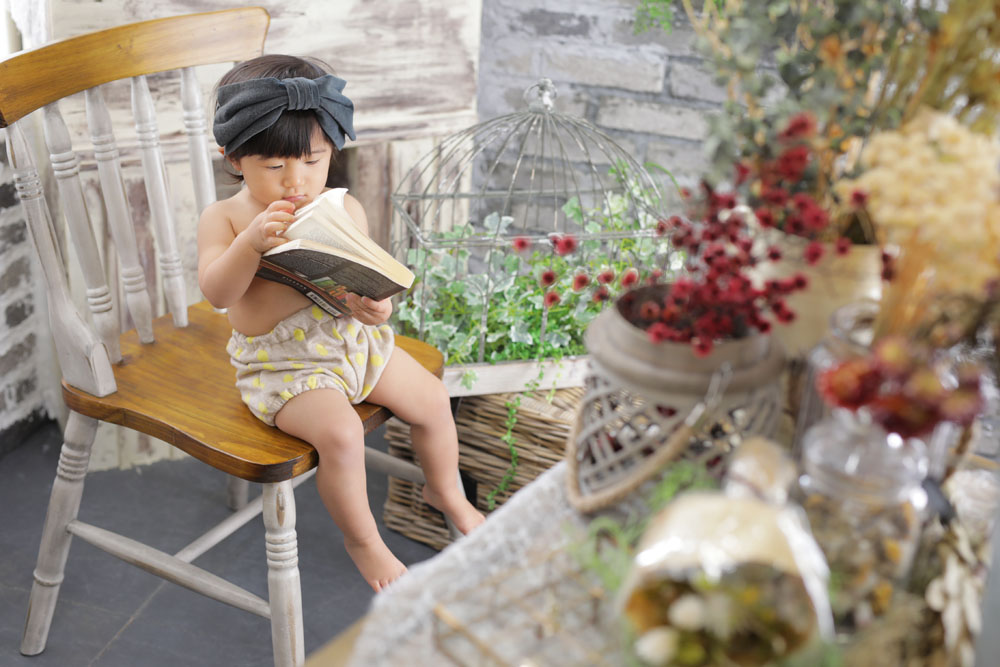 こんにちは!スタジオマルシェのひらです♪ 続いてのご紹介は 1歳の誕生記念でお越しの女の子です✿ ニコニコやカメラ目線バッチリなモデルさん^^ …