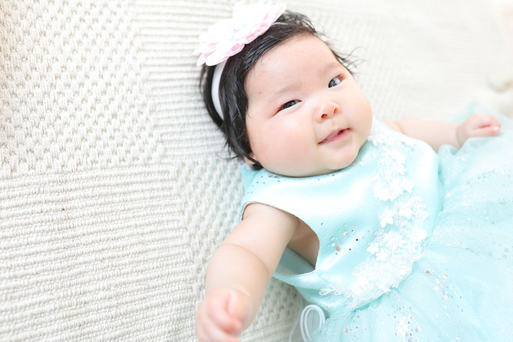 こんにちは!箱崎A店のけいです♪ 本日、最後のご紹介はお宮参り記念のなおちゃんです☆ お店についた時は少し眠たそうにしていましたが 撮影が始まると…