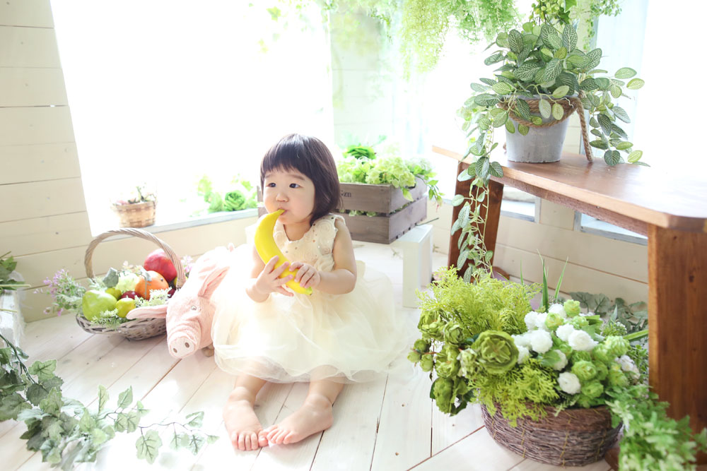 こんにちは!大濠店のひらです♪ 続いてのご紹介は1歳誕生記念でお越しの女の子です✿ とってもニコニコさんでモデルさんバッチリ^^ ぬいぐるみが大好…