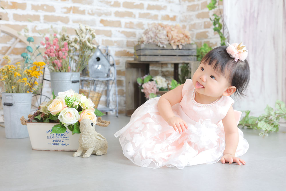 こんにちは!箱崎A店のけいです♪ 本日、最初のご紹介は1歳誕生記念のいろはちゃんです☆ カメラ目線がとっても上手ないろはちゃん^^ スタジオにある…