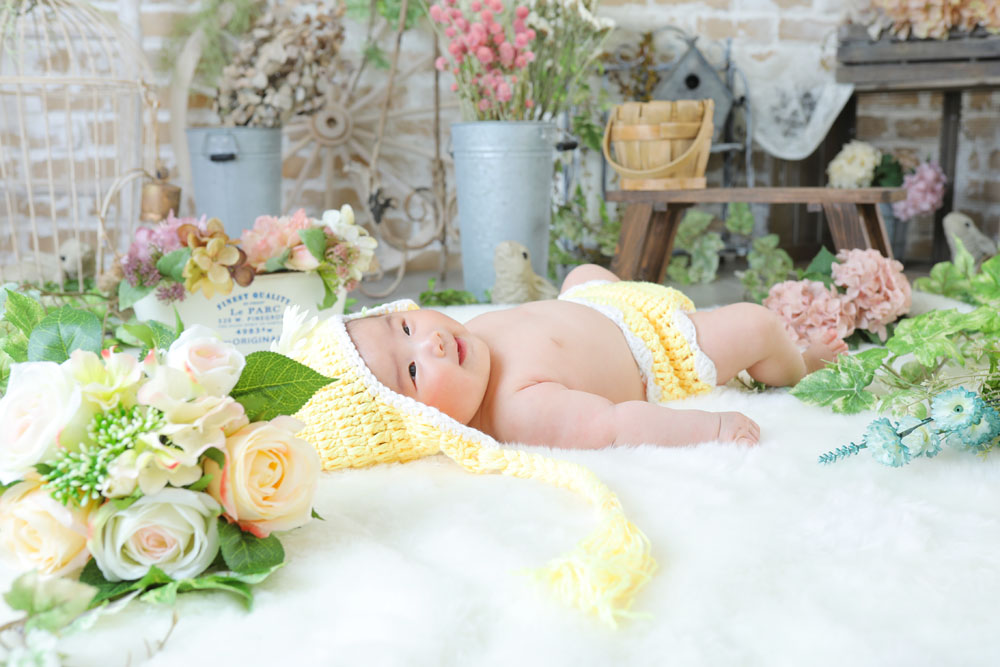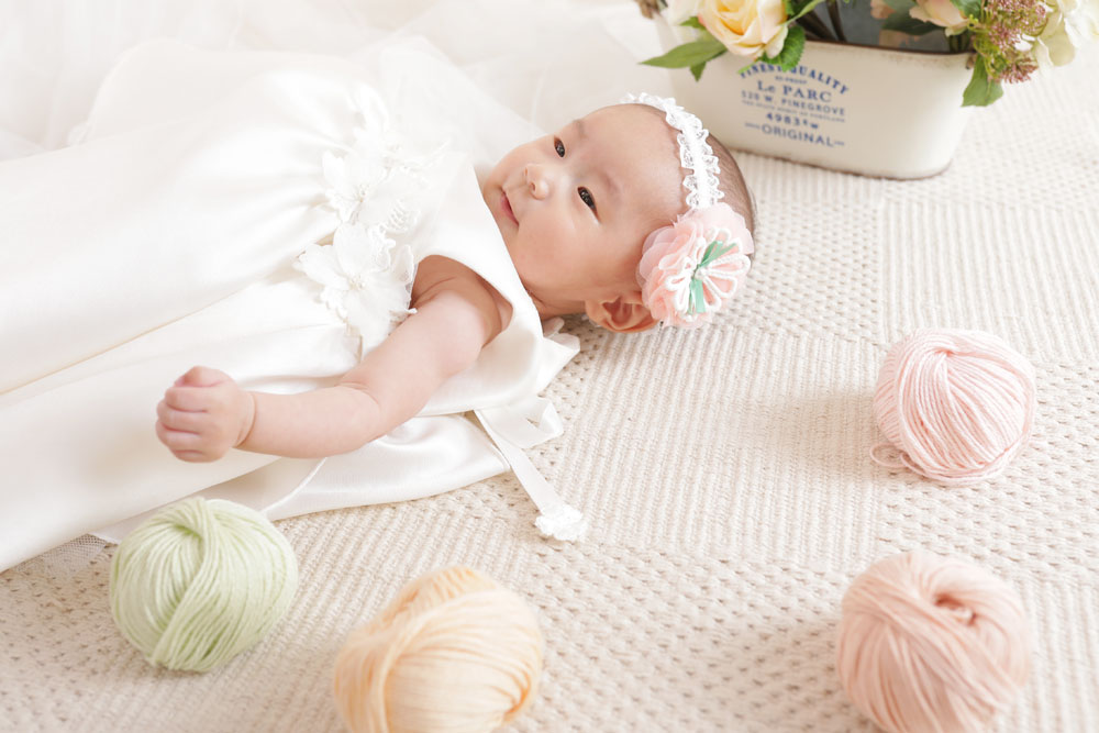 こんにちは!箱崎A店のけいです♪ 本日、最後のご紹介は百日記念の女の子です☆ モデルさんがとても上手で お着替えの時は嫌がって泣いちゃいましたが …