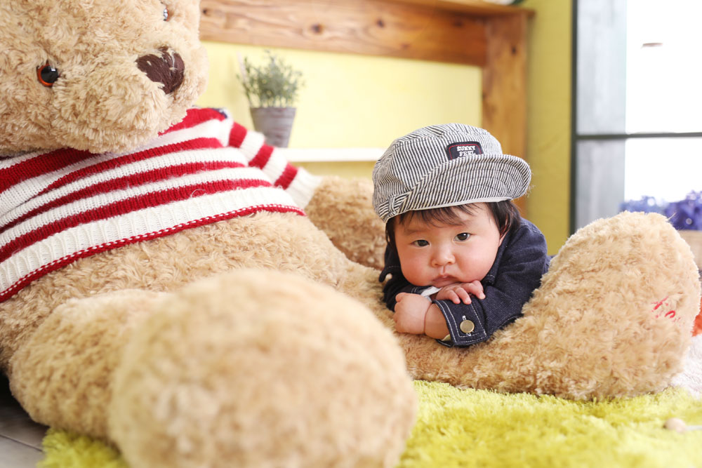 こんにちは!大濠店のひらです♪ 続いてのご紹介は百日記念でお越しの男の子です☆ 落ち着いた様子でお店に到着^^ 撮影がスタートしても少しキョロキョ…