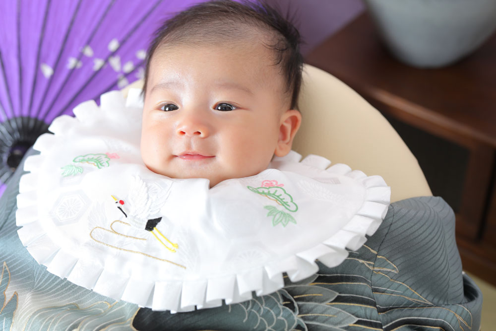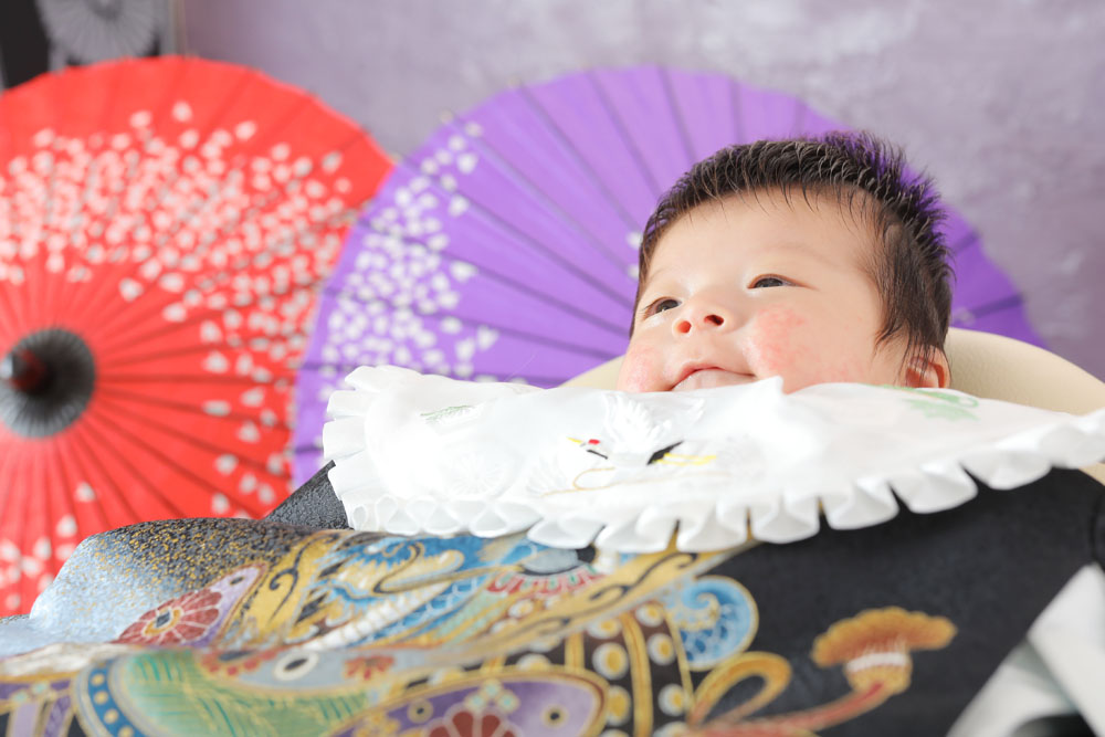こんにちは!箱崎A店のけいです♪ 本日、最初のご紹介はお宮参り記念のれんくんです☆ 寝たままでお店に到着したれんくん^^ 撮影直前まで寝ていたのも…