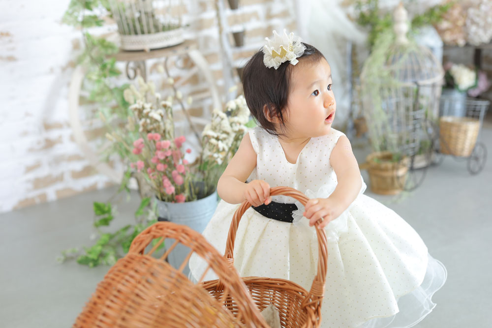 こんにちは!箱崎A店のけいです♪ 本日最後のご紹介は1歳誕生記念の女の子です☆ お店に着いた時は不安で少し泣いてしまったモデルさんでしたが 撮影が…