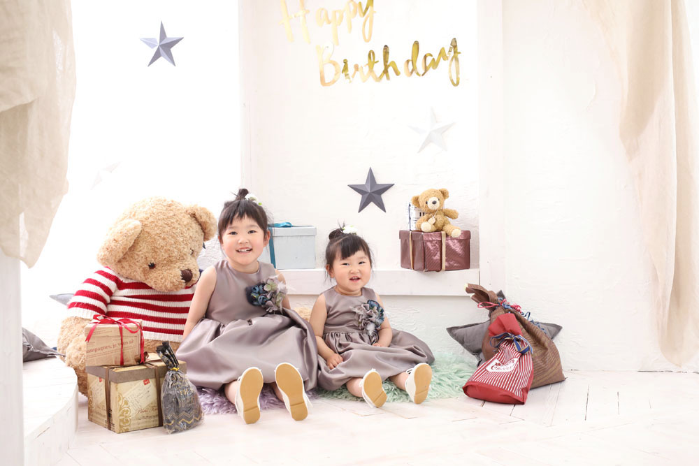 こんにちは!大濠店のひらです♪ 続いてのご紹介はお誕生記念でお越しのさなちゃんとめおちゃんです✿ 持ち込みでお揃いのお洋服とお店のドレスでの撮影でした!…