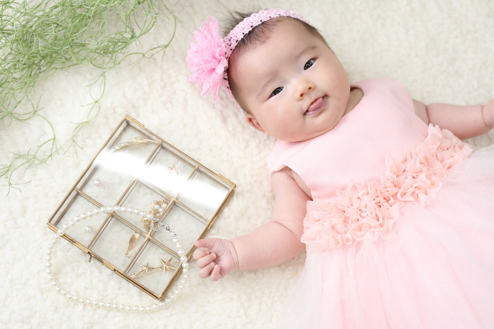 こんにちは!大濠店のひらです♪ 本日最初のご紹介は百日記念でお越しのえまちゃんです✿ お姉ちゃんも一緒に来てくれました! 撮影が始まるとカメラ目線…