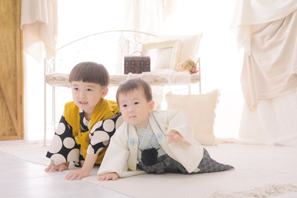 こんにちは!箱崎A店のけいです♪ 本日最初のご紹介は3歳七五三記念のしゅうたくんと 1歳誕生記念のたいちくんです☆ お持ち込みの衣装での撮影でした! …